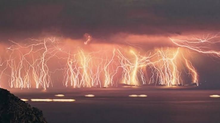 Ali, o céu noturno é iluminado por nove horas por milhares de clarões de eletricidade produzida naturalmente.